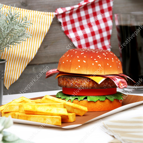 久しぶりにキヤノンクリエイティブパークに新作「ハンバーガー」が公開されました。私は構造、展開図、組立説明図を担当。美味しそうなビジュアルは他の作家さんが担当。よかったらダウンロードして作ってみてくださいね!「ハンバーガー」展開図の制作時、資料集めのためいくつかのファストフード店をまわりました。その為、その週の昼食はハンバーガーばかりだったなあ〜。😅